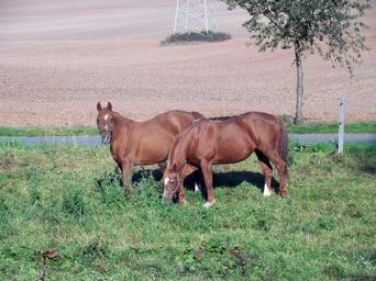 Keywords: pasture paddock graze coupling meadow landscape farm field brown horses