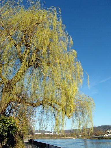 Keywords: pasture spring spring dress lime green new weeping willow tree river bank hell sunny upper rhine march