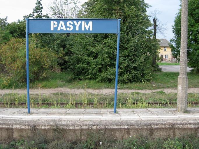 Keywords: Pasym tablica stacja kolejowa.JPG pl Tablica na stacji kolejowej w Pasymiu Own Wesoły Geodeta Train Station in Pasym
