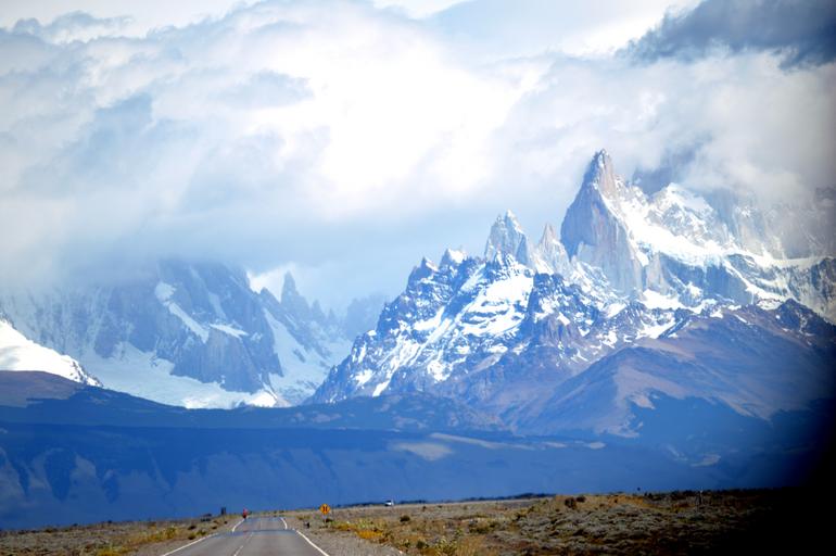 Keywords: patagonia peaks clouds ice snow landscape winter road mountains