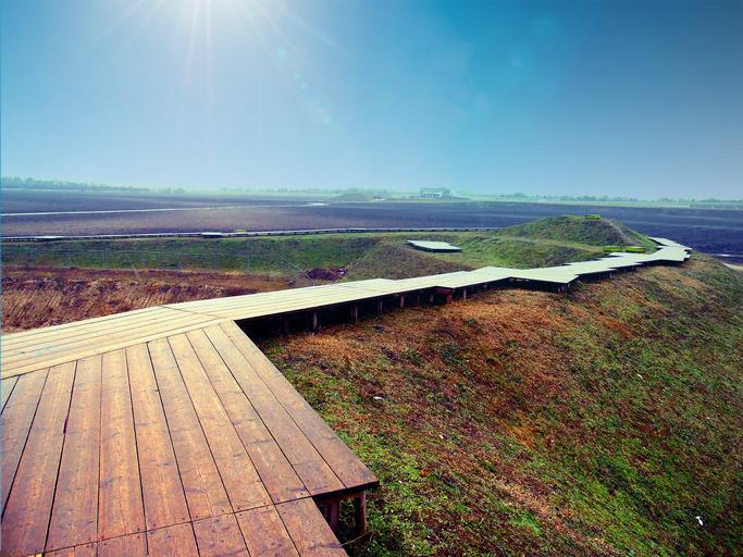 Keywords: path away wood sky web migratory path hiking nature grass wood planks wooden track boards plank road promenade
