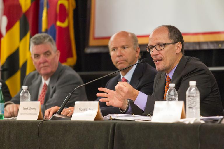| Keywords: Patrick J. Caulfield, John K. Delaney (Maryland), and Thomas Perez, 2014.jpg 02 September 2014 - Secretary of Labor Thomas Perez attended a workforce development forum with Congressman John Delany Also on the panel was Dr Stewart Edelstein Executive Director of the Universities at Shady Grove; Dr DeRionne Pollard President of Montgomery College; Diego Uriburu Executive Director of Identity Inc; and Patrick Caulfield co-owner of Coakley Williams Construction Inc Official Department of Labor Photograph This official Department of Labor photograph is being made available only for publication by news organizations and/or for personal use printing by the subject s of the photograph The photograph may not be manipulated in any way and may not be used in commercial or political materials advertisements emails products and/or promotions that in any way suggest approval or endorsement of the Secretary or the Department of Labor Photo Credit Department of Labor https //www flickr com/photos/usdol/14933073358/ L-14-08-28-A 152 2014-09-02 07 39 https //www flickr com/people/52862363 N07 US Department of Labor PD-USGov US Department of Labor https //flickr com/photos/52862363 N07/14933073358 2016-09-06 06 10 43 United States Government Work Taken with Canon EOS-1D Mark IV Patrick J Caulfield John Delaney Maryland politician Thomas Perez in 2014 Patrick J Caulfield John Delaney Maryland politician Thomas Perez in 2014 |