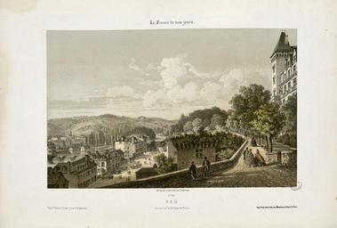 | Keywords: Pau - Vue prise de la terrasse du Château - Fonds Ancely - B315556101 A MERCEREAU 7 041.jpg Impression en 3 coul par Frick frères à Paris Fait partie d'un ensemble de recueils de lithographies de Mercereau composés de lithographies provenant de La France de nos jours vaste suite publiée par livraisons de 1853 à 1876 et comprenant 475 planches en deux tirages l'un à deux teintes noir et bistre l'autre en couleurs Les libraires ont réuni ces planches en albums de composition variable quant au nombre de planches et aux dessinateurs Asselineau Mercereau Maurice Deroy etc Un titre Les Pyrénées par Ch Mercereau; Bagnères-de-Luchon par Ch Mercereau était frappé sur le plat supérieur de la reliure de l'album ainsi que le nom du Libraire pour lequel il était réalisé La plupart des recueils de ces planches pyrénéennes portent le nom de Sajous libraire à Bagnères-de-Luchon Pl 1 à 18 numérotées de 370 à 386 Pl 374 pl 5 et 6 en double -- Pl 19 20 et 21 numérotées respectivement 407 415 et 418 Ces trois pl ont été dessinées et lithographiées par Asselineau -- Pl 22 23 et 24 numérotées 438 439 et 440 -- Pl 22 lith par Aubrun -- Pl 25 numérotée 441 -- Pl 26 à 40 numérotées de 327 à 341 -- Pl 41 à 46 numérotées de 363 à 368 -- Pl 47 numérotée 369 -- Pl 48 num 292 -- Pl 49 et 50 num 264 et 265 -- Pl 51 et 52 num 268 et 269 -- Pl 53 à 55 num de 293 à 295 -- Pl 56 num 300 -- Pl 57 à 59 num de 307 à 309 -- Pl 60 à 70 num de 316 à 326 -- Pl 71 num 63 dessin et lith d'Asselineau imprimerie Destouches -- Pl 72 et 73 num 87 et 88 dessin et lith d'Asselineau imprimerie Destouches -- Pl 74 num 124 signée Lebreton éditée chez Lalonde à Paris et imprimée chez Becquet frères à Paris -- Pl 75 num 161 dessin et litho d'Asselineau imprimerie Destouches --Pl 76 à 78 num de 207 à 209 -- Pl 79 à 81 num de 211 à 213 -- Pl 82 num 220 dessin et lith de Maurice imprimerie Destouches -- Pl 83 à 86 num de 226 à 229 -- Pl 87 et 88 num 234 et 235 -- Pl 89 à 91 num de 273 à 275 -- Pl 92 et 93 num 290 et 291 Pièces jointes 6 pl sépia dont certaines sont des doubles du recueil de Mercereau Les cinq premières planches sont numérotées respectivement 318 321 324 331 386 La dernière planche n'est pas extraite de La France de nos jours mais de L'Espagne pittoresque et monumentale Ces six planches sont signées Mercereau éditées chez Sinnet et imprimées chez Frick frères Ancely René 1876 - 1966 Possesseur fre public domain domaine public B315556101_A_MERCEREAU_7_041 jpg image/jpeg 1 f de pl lithogr ; 31 cm Frick frères Imprimeur Sinnet F Éditeur http //numerique bibliotheque toulouse fr/collect/general/index/assoc//ark /74899/B315556101_A_MERCEREAU_7_041 dir/B315556101_A_MERCEREAU_7_041 jpg Bibliothèque municipale de Toulouse A-MERCEREAU 7-41 Creator Charles Mercereau http //catalogues toulouse fr/web2/tramp2 exe/do_keyword_search/log_in setting_key BMT1 servers 1home query p001665 St Jean-de-Luz intérieur de l'Eglise St Jean-de-Luz le Château de l'Infante Biarritz Vue générale prise du Phare Château de Mauvesin près Bagnères-de-Bigorre Hautes Pyrénées Bagnères de Bigorre Hautes Pyrénées - Intérieur de l'Eglise des Carmes en couleurs Bagnères de Bigorre Hautes Pyrénées - Intérieur de l'Eglise des Carmes Bagnères-de-Bigorre - Eglise et couvent des Carmes Bagnères-de-Bigorre Hautes-Pyrénées - Tour des Jacobins Cascade et Pont de Magenta Vallée de l'Esponne Hautes Pyrénées Cascade de Trémes-Aïgues Vallée de Grip Hautes Pyrénées St Sauveur Hautes Pyrénées - Le Pont Napoléon Bayonne - Eglise St André Arreau et la Vallée d'Aure Hautes Pyrénées - Vue prise au dessus de la route du Col d'Aspin Auch - Vue prise sur les bords du Gers Auch - Vue de la Cathédrale Auch - Intérieur de la Cathédrale Bagnères-de-Bigorre - Vue Générale prise de la Fontaine ferrugineuse Eaux-Bonnes Basses-Pyrénées - L'établissement Thermal et la Chapelle Nantes - Vue de l'Eglise Ste Croix Le Croisic - Plage des Baigneurs et Etablissement de Bains Le Folgoët - Vue de l'Eglise Brèche de Roland prise de Gèdres Hautes Pyrénées Eglise des Templiers à Luz Chapelle du couvent de Pouëlahun i e Pouey Lahun - Vallée d'Azun Hautes Pyrénées Le Pont de Scia - Route de Luz à Gavarnie Hautes-Pyrénées Vue de l'établissement de la Raillière près Cauterets Hautes-Pyrénées Vue générale de Cauterets prise du Mamelon Vert Hautes-Pyrénées Vue du Fort de Lourdes Hautes-Pyrénées Vue d'Argelès-de-Bigorre Hautes-Pyrénées Vue de St Sauveur Hautes-Pyrénées Le Pas de l'Echelle Route de Gavarnie Hautes-Pyrénées Fond de la Vallée d'Argelès prise de la terrasse de St Savin Hautes-Pyrénées Place Grammont à Pau Basses-Pyrénées Vue générale des Eaux-Bonnes Basses-Pyrénées Barèges et la Vallée du Bastan Hautes-Pyrénées Chute supérieure du Pont d'Espagne Hautes-Pyrénées La grotte miraculeuse à Lourdes Hautes-Pyrénées Eglise de Bétharram et Pont de Lestelle Basses Pyrénées Cascade du Cerizet Près Cauterets Hautes-Pyrénées Pic du Midi d'Ossau 2885m Basses Pyrénées - Vue prise du 3e plateau de Bious-Artigues Toulouse - Cloître du Musée Galerie du Moyen-Age Pau - Vue du Château prise du Parc Toulouse - Cloître du Musée et Clocher des Augustins Toulouse - La maison de pierre fragment de la façade Toulouse - Intérieur de St Sernin St Jean-de-Luz Fort du Socoa Toulouse - Vue du Capitole Bordeaux Vue de la Porte du Caillau i e Cailhau Bordeaux Porte de la grosse Cloche Bordeaux Vue des Quinconces Bordeaux - Vue de la Tour et de l'Eglise de St Michel Toulouse - Vue du Pont de pierre prise du Quai de Brienne Toulouse - Abside de l'Eglise de St Sernin de l'an 1097 Toulouse - Choeur de la Cathédrale St Etienne Rouen - Hôtel de Bourgtheroulde Biarritz - Vue des Bains Napoléon et du Casino Biarritz - Vue des Bains du Port Vieux Biarritz - Vue de l'Entrée de la Ville à l'arrivée de Bayonne Le Lac Bleu Hautes-Pyrénées