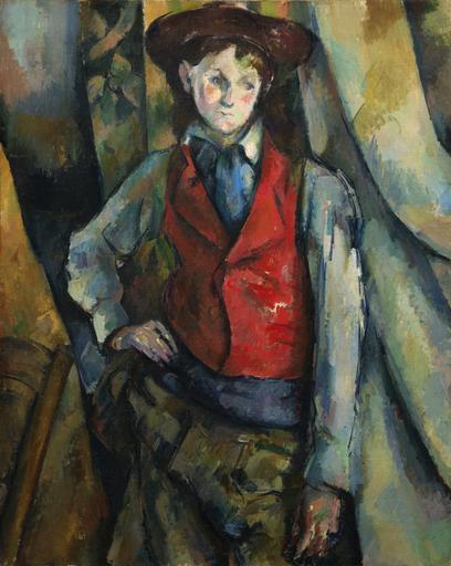 | Keywords: Paul Cézanne - Garçon au gilet rouge.jpg Artwork Creator Paul Cézanne Title Knabe mit roter Weste Boy in a Red Waistcoat Garçon au gilet rouge 1888-1890 oil canvas cm 89 5 72 4 National Gallery of Art West Main Floor Gallery 84 accession number 1995 47 5 object history Ambroise Vollard 1867-1939 Paris ; sold 1896 to Egisto Fabbri 1866-1933 Paris and Florence until at least 1925;<ref><small>According to John Rewald The Paintings of Paul Cézanne a Catalogue Raisonné New York 1996 no 659 Fabbri sold the picture back to Vollard in 1904 and repurchased it at a later date Fabbri lent it to the 1925 exhibition in Paris </small></ref> Paul Rosenberg Paris and Wildenstein Galleries Paris ; sold 1929 to Jakob Goldschmidt d 1955 Berlin and New York; his estate; Goldschmidt sale Sotheby's London 15 October 1958 no 6 ; purchased by Carstairs Gallery New York for Mr and Mrs Paul Mellon Upperville Virginia; gift 1995 to NGA reflist credit line Collection of Mr and Mrs Paul Mellon in Honor of the 50th Anniversary of the National Gallery of Art http //www nga gov/content/ngaweb/Collection/art-object-page 93044 html National Gallery of Art Washington DC Other versions PD-old-auto-1923 1906 DEFAULTSORT Cezanne; Boy in a Red Waistcoat; National Gallery of Art; 1890 Portrait paintings by Paul Cézanne Paintings by Paul Cézanne the National Gallery of Art Washington 19th-century portrait paintings of boys at three-quarter length Waistcoats in art 1880s paintings in the United States |