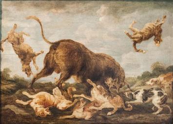 Keywords: Paul de Vos - Buffalo Attacked by Dogs.jpg Artwork Creator Paul de Vos Oil on canvas Institution Museum voor Schone Kunsten Gent object history credit line accession number own photo by Szilas inthe Museum voor Schone Kunsten Gent PD-old-100 Paul de Vos Flemish paintings in the Museum of Fine Arts Ghent Vos Paul de |