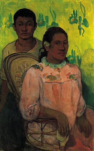 | Keywords: Paul Gauguin - Jeune fille et garçon de Tahiti (1899).jpg Artwork Creator Paul Gauguin 1899 oil canvas cm 94 6 61 9 institution Norton Simon Museum accession number M 1976 08 P object history Ambroise Vollard Paris <br/>Moll Vienna <br/>Mrs Austin Mardon Ardross Castle Scotland 1923 sale London Sotheby's 24-25 November 1964 lot 32 <br/>Hammer Galleries New York sold 1965 to;<br/>Norton Simon Los Angeles gift 1976 to;<br/>Norton Simon Art Foundation credit line Gift of Mr Norton Simon exhibition history 99 / Paul Gauguin ~ lower right date / signature Gauguin catalogues 578 400 http //www nortonsimon org/collections/browse_title php id M 1976 08 P The Norton Simon Museum PD-old-auto 1903 DEFAULTSORT Gauguin Paul; Tahitian Woman and Boy; Norton Simon Museum Polynesia by Paul Gauguin 1890s paintings by Paul Gauguin 1899 Tahitian Woman and Boy; Norton Simon Museum French portrait paintings in the Norton Simon Museum Gauguin People of Tahiti Paintings by Paul Gauguin in the United States Post-Impressionist paintings in the United States Portrait paintings of sitting women Pink clothing in art 1899 oil on canvas paintings in the United States French paintings in the United States 1890s paintings from France |