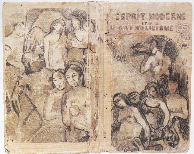 Keywords: Paul Gauguin - L'Esprit Moderne et le Catholicisme - F 82a, F 82b.jpg Artwork Creator Paul Gauguin Front and back covers of Paul Gauguin's 1902 manuscript L'Esprit Moderne et le Catholicisme 1902 Traced monotypes printed in black and brown; shellacked Japan paper mounted down Field Size cm 19 0 28 0 back cover left Size cm 16 4 24 2 front cover right Institution Saint Louis Art Museum place of discovery object history exhibition history credit line Gift of Vincent L Price Jr in memory of his parents Marguerite and Vincent L Price Field notes that together these constitute the large Nativity F 81 Brettell cat 267 p 467 Brettell describes the front cover as a Mary Magdalene brothel scene the back cover a nativity scene accession number 287 1948 place of creation Scan from cite book Brettell Richard with Peter Zegers The Art of Paul Gauguin National Gallery of Art 1988 468-71 The Final Years Tahiti and Hivaoa 0-8212-1723-2 88-81005 http //slam org 8080/emuseum/view/objects/asitem/search /0/title-asc t state flow 5efb4ad2-00ca-4bd1-a7c5-ad94666a2783 Museum page PD-old-100-1923 <gallery> File Paul Gauguin - L'Esprit Moderne et le Catholicisme - Gu 58 Gu 59 jpg Inner covers </gallery> cite book Brettell Richard with Peter Zegers The Art of Paul Gauguin National Gallery of Art 1988 468-71 The Final Years Tahiti and Hivaoa 0-8212-1723-2 88-81005 cite book Field Richard S Paul Gauguin Monotypes 1973 https //openlibrary org/books/OL5430689M/Paul_Gauguin_monotypes Philadelphia Museum of Art Lebanon Valley 73077306 cite journal Leonard H Stewart An Unpublished Manuscript by Paul Gauguin Bulletin of the City Art Museum of St Louis 1949 34 3 41-52 http //www jstor org/stable/40715169 Uploaded with UploadWizard Prints by Paul Gauguin |