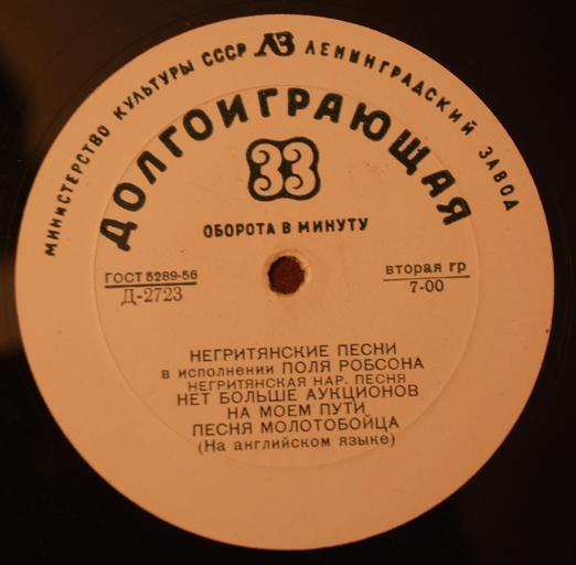 | Keywords: Paul Robeson - Negro Songs - Soviet Ministry of Culture.JPG en Paul Robeson record Negro Songs published by Soviet Ministry of Culture in 1950's Original Record s 1940 Photographed 2012-06-26 self-photographed Jarekt Record Label PD-text Photograph Jarekt Paul Robeson Soviet Union in the 1950s Music of the Soviet Union Photographs by Jarek Tuszynski | ||||