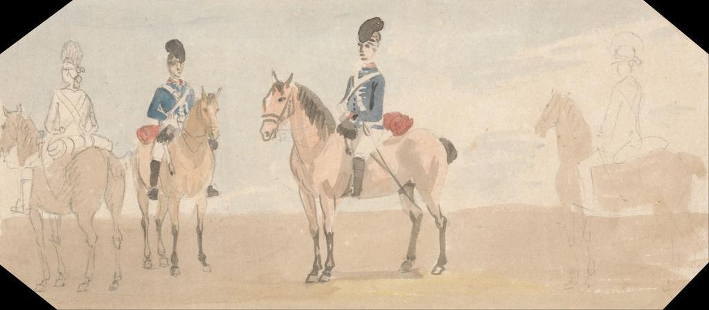 | Keywords: Paul Sandby - The Light Dragoons - Google Art Project.jpg No inscription Inscription _Signed_and_Dated Not signed not dated Not on View Watercolor and graphite on medium cream slightly textured wove paper horses animals soldiers men uniforms military uniforms military personnel special url_id xAHzKH6X8T7APQ PD-old-100-1923 1809 Drawings by Paul Sandby Google Art Project works by Paul Sandby Cavalry of the French Revolution era | ||||