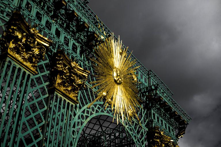 Keywords: pavilion architecture historically sanssouci artfully gold sky gray clouds cloudiness
