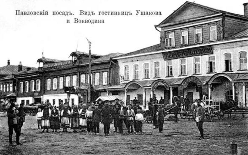 Keywords: Pavlovsky Posad postcard. Market square hotels.jpg Гостиницы на то говой площади Павловского Посада на их месте сейчас здание го одской админист ации Hotels on main square of Pavlovsky Posad demolished to make way to the new city hall building Викто Ситнов Вохонский к ай 6 2007 http //bogorodsk-noginsk ru/p-posad/vkn6 html s 1900 as attributed in source Anonymous probably printed at N V Bazhanov's photo shop PD-RusEmpire History of Pavlovsky Posad Revolutsii Square Pavlovsky Posad Various places of the Russian Empire on postcards