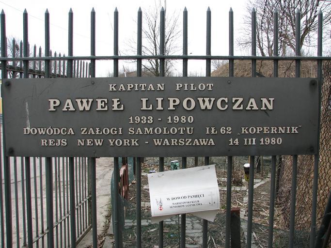 | Keywords: Pawel Lipowczan tablica pamiatkowa.JPG pl Tablica upamiętniająca kpt Pawła Lipowczana - dowódcę załogi samolotu Mikołaj Kopernik który 14 marca 1980 roku rozbił się w Warszawie podczas podchodzenia do lądowania Warszawa ul Lipowczana own Grzegorz Petka 2009-03-22 Paweł Lipowczan Things named after Nicolaus Copernicus |