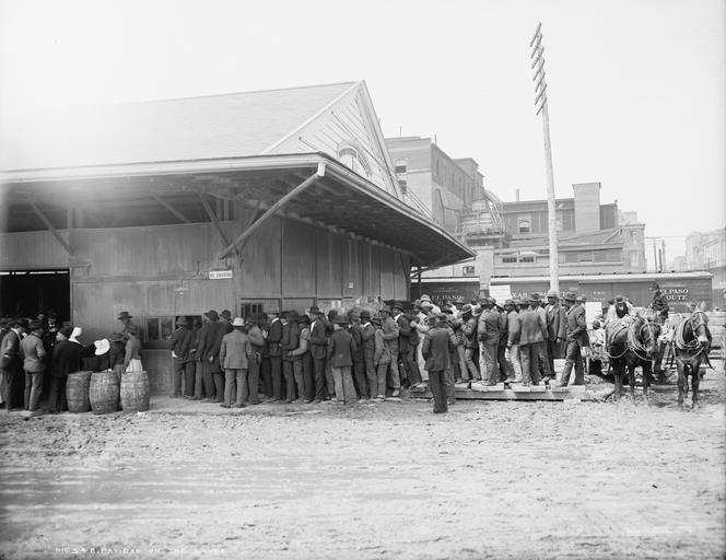 | Keywords: Pay Day On The Levee NOLA.jpg LargeImage Pay-day on the levee New Orleans Louisiana early 1900s Detroit Publishing Company photo via Library of Congress website http //loc gov/pictures/item/det1994001333/PP/ circa 1900 1906 Unnamed photographer for Detriot Publishing PD-Detroit New Orleans in the 1900s Queues in the United States Horse transport in New Orleans Southern Pacific Railroad Black and white photographs of New Orleans | ||||