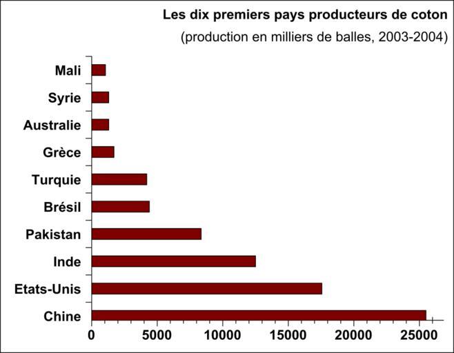 | Keywords: Pays producteurs coton 2004.svg fr Graphique représentant la production de coton des dix premiers pays producteurs en milliers de balles Source http //www nationmaster com/graph/agr_cot_pro-agriculture-cotton-production Cotton production most recent by country Own Urban 2009-04-21 Cotton industry Agriculture in the United States |