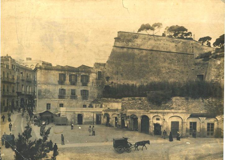 Keywords: Pcostituzione.jpg Cagliari Piazza Costituzione prima della sistemazione fine ottocentesca del Bastione di Saint Remy scanner fine XIX secolo author PD-old Castello Cagliari Historical images of Cagliari