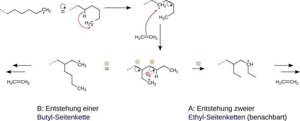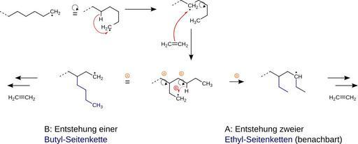 Keywords: PE-LD mechanism.svg en Mechanism for the emergence of side chains during synthesis of polyethylene PE-LD de Mechanismus der Entstehung von Seitenketten während der Synthese von Polyethylen PE-LD 2015-06-08 own Minihaa other versions cc-zero Uploaded with UploadWizard Polyethylene