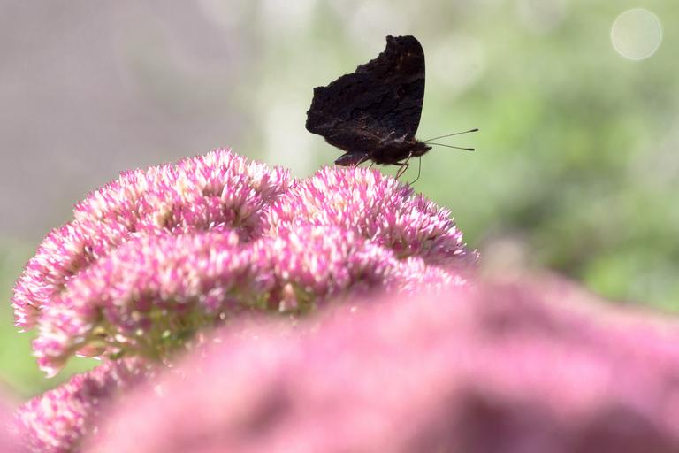 Keywords: peacock butterfly butterfly side contour wing sedum pink stonecrop flowers plant flora