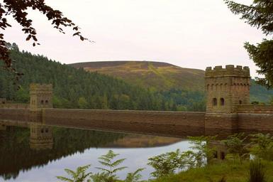 Keywords: peak district reservoir howden reservoir dam howden dam 617 squadron dam busters trees calm water reflections