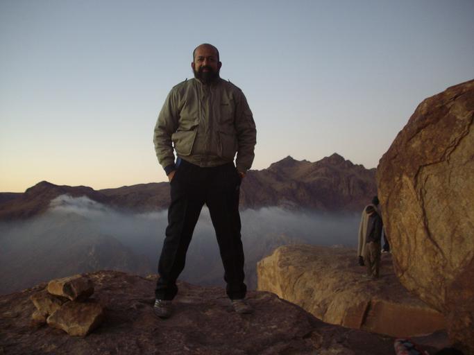 | Keywords: 'Peak Of Mt Sinai' at Dawn..JPG en Pilgrim Rudolph A Furtado at the Peak of Mt Sinai on Tuesday 28-10-2008 at Sunrise taken by fellow pilgrim Mr Stephen Lewis The pure unpolluted mist in the background as also a slip from the precipiece would mean a fall to death along with the cold 0 to 5 C ambient temps makes it a life-time unforgettable Trekking experience Own Rudolph A furtado Mount Sinai tourist | ||||