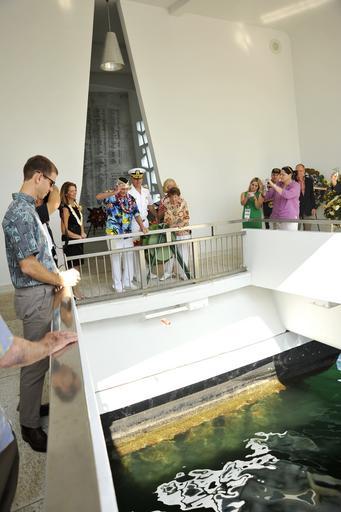| Keywords: Pearl Harbor remembered 131207-N-IU636-348.jpg en Pearl Harbor survivor Woodrow W Derby and Adm Rick Williams commander of Navy Region Hawaii and Surface Group Middle Pacific render honors at the USS Arizona Memorial during the 72nd anniversary Pearl Harbor Day commemoration Pearl Harbor survivors and distinguished guests visited the memorial for the presentation of wreaths More than 2 500 guests including Pearl Harbor survivors and other veterans attended the National Park Service and U S Navy-hosted joint memorial ceremony at the World War II Valor in the Pacific National Monument U S Navy photo by Mass Communication Specialist Seaman Johans Chavarro/Released 2013-12-07 Petty Officer 3rd Class Johans Chavarro https //www dvidshub net/image/1069074 131207-N-IU636-348 2013-12-10 04 09 PEARL HARBOR HI US PD-USGov-Military-Navy USS Arizona Memorial interior Images from DoD uploaded by Fæ 72nd anniversary of Pearl Harbor attacks |