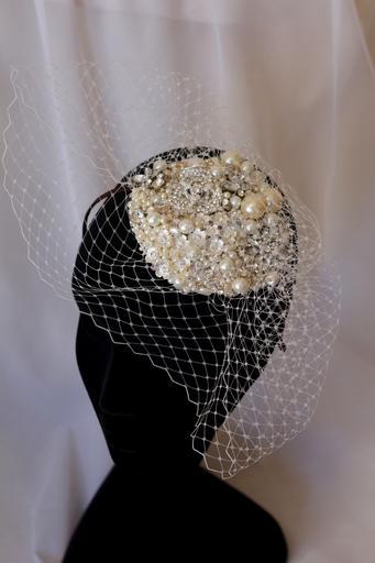 Keywords: pearls wedding bride pink ivory head band retro fashion jewelry luxury vintage precious fascinator bridal