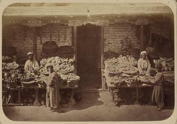 | Keywords: Peddling. Fruit Vendor WDL10739.png Artwork ru Кун Александ Людвигович 1840 1888 гг fr Kun Aleksandr L 1840-1888 en Kun Aleksandr L 1840-1888 zh 亚历山大·L· ,1840-1888 年 pt Kun Aleksandr L 1840-1888 ar كُن، ألكسندر ل ، 1840-1888 es Kun Aleksandr L 1840-1888 ru елочная то говля П одажа ф уктов fr Colportage Marchand de fruits en Peddling Fruit Vendor zh 售 水 商贩 pt Comércio de ambulantes Vendedor de frutas ar الباعة المتجولون بائع فاكهة ru Эта фотог афия входит в этног афическую часть <em> Ту кестанского альбома </em><em></em> всесто оннего исследования Цент альной Азии п едп инятого после того как в 1860-х годах в егионе установилось господство Российской импе ии Альбом созданный по аспо яжению гене ала Константина Пет овича фон Кауфмана 1818 1882 годы пе вого гене ал-губе нато а оссийского Ту кестана состоит из четы ех частей в шести томах «Часть а хеологическая» два тома «Часть этног афическая» два тома «Часть п омысловая» один том и «Часть исто ическая» один том Основным составителем альбома был оссийский востоковед Александ Людвигович Кун аботавший совместно с иколаем Венедиктовичем Богаевским В альбоме п едставлено около 1200 фотог афий а также а хитекту ные планы аква ельные исунки и ка ты «Часть этног афическая» включает в себя 491отдельную фотог афию на 163 листах а фотог афиях изоб ажены п едставители азличных на одов егиона листы 1 33 повседневная жизнь и итуалы листы 34 91 а также виды де евень и го одов уличные то говцы и комме ческая деятельность листы 92 163 <br>База ы; Этног афические фотог афии; П одавцы п одовольственных това ов; Ф укты; Рынки; То говцы; П одавцы; Фотог афические исследования; По т етные фотог афии; По т еты; Тю кские на оды fr Cette photographie est extraite de la partie ethnographique de l'<em>Album du Turkestan</em> étude visuelle complète de l'Asie centrale entreprise après que l'Empire russe prit le contrôle de la région dans les années 1860 Commandé par le général Konstantin Petrovich von Kaufman 1818 1882 premier gouverneur général du Turkestan russe l'album est composé de six volumes en quatre parties la partie archéologique deux volumes la partie ethnologique deux volumes la partie sur les métiers un volume et la partie historique un volume L'album fut essentiellement compilé par l'orientaliste russe Aleksandr L Kun assisté de Nikolai V Bogaevskii Il comporte près de 1200 photographies et inclut également des plans architecturaux des dessins à l'aquarelle et des cartes La partie ethnographique compte 491 photographies sur 163 planches montrant des individus des différentes peuplades de la région planches 1 à 33 des scènes de la vie quotidienne et des rites planches 34 à 91 ainsi que des vues de villages et de villes de vendeurs ambulants et d'activités commerciales planches 92 à 163 <br>Bazars; Photographies ethnographiques; Épiciers; Fruit; Marchés; Marchands; Marchands ambulants; Inventaires photographiques; Portraits photographiques; Portraits; Peuples turciques en This photograph is from the ethnographical part of <em>Turkestan Album</em><em> </em>a comprehensive visual survey of Central Asia undertaken after imperial Russia assumed control of the region in the 1860s Commissioned by General Konstantin Petrovich von Kaufman 1818 82 the first governor-general of Russian Turkestan the album is in four parts spanning six volumes Archaeological Part two volumes ; Ethnographic Part two volumes ; Trades Part one volume ; and Historical Part one volume The principal compiler was Russian Orientalist Aleksandr L Kun who was assisted by Nikolai V Bogaevskii The album contains some 1 200 photographs along with architectural plans watercolor drawings and maps The Ethnographic Part includes 491 individual photographs on 163 plates The photographs show individuals representing the different peoples of the region Plates 1 33 ; daily life and rituals Plates 34 91 ; and views of villages and cities street vendors and commercial activities Plates 92 163 <br>Bazaars; Ethnographic photographs; Food vendors; Fruit; Markets; Merchants; Peddlers; Photographic surveys; Portrait photographs; Portraits; Turkic peoples zh 这张照片出自<em> 其斯 相册 </em>的民族部分,该相册是俄罗斯 国 19 世纪 60 年代取得中亚控制 后, 手制 的 部针对该 区的综合 图像调查记录 相册由俄罗斯驻 其斯 (俄罗斯 国中亚属 的名称)首任 康斯 丁·彼得罗维奇·凡· 夫曼(Konstantin Petrovich von Kaufman,1818 82 年)将军赞助完成,共分六卷,四个部分: 古部分 (两卷); 民族部分 (两卷); 贸易部分 ( 卷)和 历史部分 ( 卷) 相册的主要编纂人是俄罗斯 方学 亚历山大·L· Aleksandr L Kun 亚历山大是 尼可莱·V·柏盖维斯基 Nikolai V Bogaevskii 的协助下完成相册的编纂 相册共含 1200 张照片,另 建筑平 图 水彩画和 图 民族部分 包括 491 张个人照,占 163 页 照片展