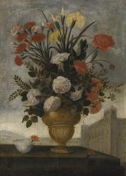 | Keywords: Pedro de CamprobÃn Still Life of Iris, Lilies, Roses and Carnations In Elaborate Urn 2.jpg Still life of iris lilies roses and carnations in elaborate urn with a blue and white cup and a small glass vase; landscape beyond one of a pair oil on canvas 94 x 73 7 cm http //www sothebys com/en/auctions/ecatalogue/2013/old-master-paintings-n08952/lot 241 html Sotheby's Sale N08952 New York 2013-01-31 “2013-02-01 century 17 Creator Pedro de CamprobÃn PD-art-100 Images from Sotheby's Paintings by Pedro de CamprobÃn Still life paintings of flowers Still-life paintings with irises |
