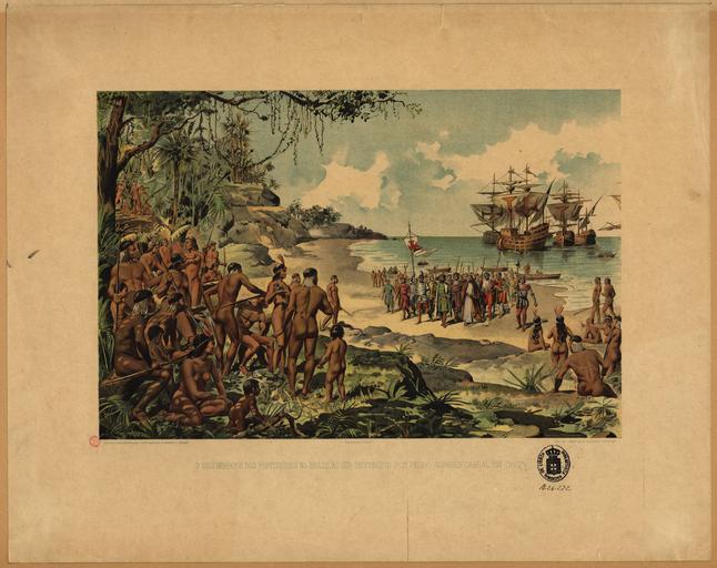 | Keywords: Pedro-e-297-a 0001 1 p24-C-R0150.jpg O desembarque dos portuguezes no Brazil ao ser descoberto por Pedro Alvares Cabral em 1500 Biblioteca Nacional de Portugal http //purl pt/6942<br/>Cota local e-297-a Biblioteca Nacional de Portugal fol 28 x 42 cm ca 1900 Creator Alfredo Roque Gameiro Other versions <gallery>File Pedro-e-297-a 0001 1 p24-C-R0150 cropped jpg Borderless </gallery> PD-old-auto-1923 1935 1500 in art 16th-century sailing ships in paintings 1900s paintings from Portugal Alfredo Roque Gameiro Brazil in history paintings Carracks in art Discovery of Brazil Images from the Biblioteca Nacional de Portugal Paintings of indigenous peoples of Brazil Pedro Álvares Cabral Porto Seguro Sailing ships of Portugal |