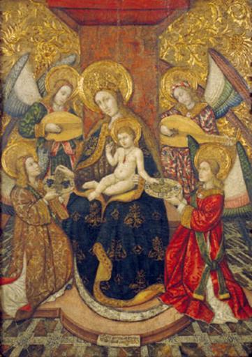 Keywords: Pedro garcia benabarre-virgen.jpg Mare de Déu i quatre àngels Virgin and four Angels Virgen y cuatro ángeles creator Pedro García de Benabarre ca 1470 langSwitch Tremp relleus d'estuc i daurat amb pa d'or sobre fusta Tempera stucco reliefs and gold leaf on wood Temple relieves de estuco y dorado con pan de oro sobre tabla cm 211 8 147 5 13 Institution Museu Nacional d'Art de Catalunya http //www mnac cat/img/foto/colleccio/col_gotic_ambit_33_1_big jpg inscription Pere Garcia de Benavarre ma pintat any object history provenanceEvent parish church of the Assumption in Bellcaire d'Urgell Noguera 015817-000 museus en línia 716260 Other versions PD-old-100 Pedro García de Benabarre Gothic paintings in the Museu Nacional d'Art de Catalunya |