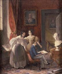 Keywords: Pedro II of Brazil and his sisters 1839.JPG en Watercolor painting depicts Emperor Pedro II of Brazil studying next to his sisters Januária and Francisca c 1839 1839 Schwarcz Lilia Moritz 1998 in Portuguese As barbas do Imperador D Pedro II um monarca nos trópicos 2nd ed São Paulo Companhia das Letras ISBN 978-85-7164-837-1 Adolphe D´Hastrel 1805-1874 PD-Art Uploaded with UploadWizard Portrait paintings of Pedro II of Brazil 1839 Adolphe d'Hastrel Pedro II of Brazil in the 1830s 1839 1839 paintings 1839 in Brazil 1830s paintings from Brazil Group portraits with 3 persons Portraits of siblings Paintings of paintings John VI of Portugal Paintings of Pedro I of Brazil Busts in portrait paintings Red drapery in portrait paintings 19th-century family portraits of royalty ImageNote 1 853 304 70 82 1032 1232 2 Emperor Pedro I of Brazil also King Pedro IV of Portugal ImageNoteEnd 1 ImageNote 2 469 218 78 86 1032 1232 2 King João VI of Portugal ImageNoteEnd 2 ImageNote 3 339 510 86 107 1032 1232 2 Francisca then-Princess of Brazil ImageNoteEnd 3 ImageNote 4 454 490 90 109 1032 1232 2 Januária then-Princess Imperial of Brazil ImageNoteEnd 4 ImageNote 5 526 658 95 113 1032 1232 2 Pedro II of Brazil ImageNoteEnd 5 |