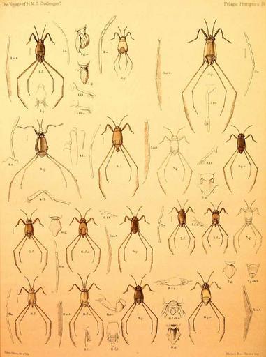 | Keywords: PelagichemipteraWhite01.jpg Plate from the Challenger Report on the Pelagic Hemiptera <br/>1 Halobates micans as Halobates wullerstorffi 2 Halobates micans 3 Halobates princeps 4 Halobates micans as Halobates streatfieldanus 5 Halobates sobrinus 6 Halobates germanus 7 Halobates sericeus 8 Halobates hayanus http //www 19thcenturyscience org/HMSC/HMSC-Reports/Zool-19/htm/doc html Plate from the Challenger Report on the Pelagic Hemiptera 1883 F Buchanan White thumb left 120px Halobates princeps PD-Challenger Report Francis Buchanan White Halobates Report on the scientific results of the voyage of H M S Challenger during the years 1873-76 under the command of Captain George S Nares |