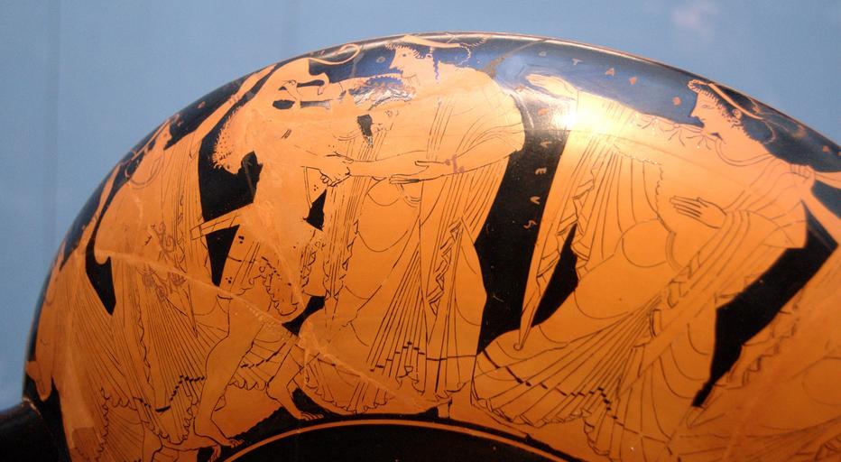 Keywords: Peleus Thetis Staatliche Antikensammlungen 2619A.jpg Epeleios-Maler Epeleios Painter Raub der Thetis Seite A von einer rotfigurigen attischen Kylix 510-500 v Chr Aus Vulci Rape of Thetis Side A of an Attic red-figure kylix 510 “500 BC From Vulci Enlèvement de ThĂ©tis Face A d'un kylix attique Ă figures rouges 510-500 av J -C Provenance Vulci Museum Staatliche Antikensammlungen Room 3 Beazley ARV2 146 2 1628 object history credit line accession number Inv 2619A User Bibi Saint-Pol own work 2007-02-13 other versions Nereids in ancient Greek pottery Rape of Thetis Kylixes Epeleios Painter Red-figure pottery in the Staatliche Antikensammlungen Staatliche Antikensammlungen - Room 3 510s BC 500s BC Ancient Greek pottery from Vulci Thetis in ancient Greek pottery Peleus in ancient Greek pottery |