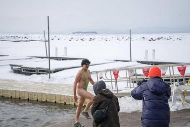 Keywords: penguin plunge borat vermont special olympics winter fund raiser costume person people male happy mature smiling tradition cheerful man character