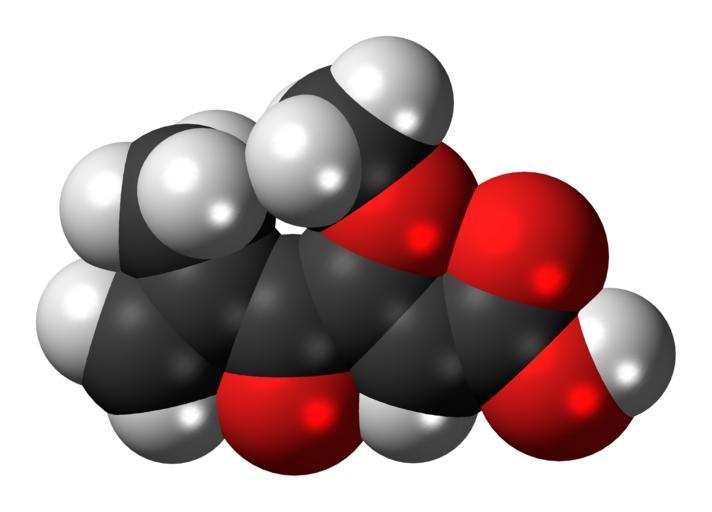 | Keywords: Penicillic-acid-3D-spacefill.png Space-filling model of the penicillic acid molecule a mycotoxin Colour code 505050 Carbon C black<br> F0F0F0 Hydrogen H white<br> F51E1E Oxygen O red<br> 2011-02-05 own DS Visualizer Jynto talk Ball-and-stick version cc-zero Carboxylic acids Ketones Space-filling models Methyl ethers Alkene derivatives Images by Jynto |