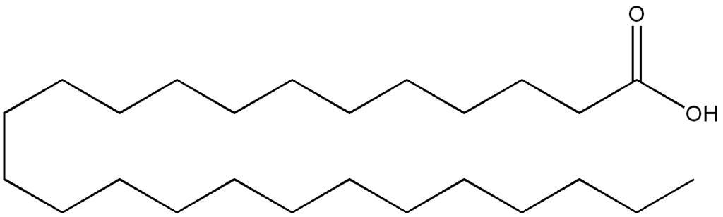 Keywords: Pentacosanic acid 1b.png en Pentacosanic acid С<sub>24</sub> <sub>49</sub>СОО ru Пентакозановая кислота С<sub>24</sub> <sub>49</sub>СОО own Vadim Akopyan 2011-05-21 Pentacosanic acid svg Cc-zero Saturated fatty acids