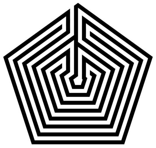 Keywords: Pentagonal-labyrinth.svg A classical Cretan type of labyrinth in pentagonal form For the basic square form of the Cretan labyrinth see File Cretan-labyrinth-square svg Self-made graphic converted from the following vector PostScript source code <pre> 306 396 translate 89 dup scale/plr 0 25 sub 2 47213472 12 5 mul mul dup 3 2 roll 72 mul 90 add dup 3 1 roll cos mul 3 1 roll sin mul def/P /x exch def 4 x plr 3 x plr 2 x plr 1 x plr 0 x plr moveto 4 lineto repeat closepath stroke def/xadd 0 5 sub 12 5 mul 3 2 roll add exch def 12 5 setlinewidth 1 1 8 P for 1 setgray 0 8 1 plr -1 xadd moveto 0 5 1 plr -1 xadd lineto stroke 0 4 1 plr -1 xadd moveto 0 1 1 plr -1 xadd lineto stroke 0 7 3 plr 1 xadd moveto 0 4 3 plr 1 xadd lineto stroke 0 3 3 plr 1 xadd moveto 0 0 3 plr 1 xadd lineto stroke 0 5 7 plr 3 xadd moveto 0 4 7 plr 3 xadd lineto stroke 0 1 7 plr 3 xadd moveto 0 0 7 plr 3 xadd lineto stroke 0 6 5 plr -3 xadd moveto 0 5 5 plr -3 xadd lineto stroke 0 2 5 plr -3 xadd moveto 0 1 5 plr -3 xadd lineto stroke 0 setgray 0 7 9 plr 0 xadd moveto 0 0 8 plr 0 xadd lineto stroke 0 7 3 plr -2 xadd moveto 0 5 3 plr -2 xadd lineto stroke 0 3 3 plr -2 xadd moveto 0 1 3 plr -2 xadd lineto stroke 0 6 6 plr 2 xadd moveto 0 4 6 plr 2 xadd lineto stroke 0 2 6 plr 2 xadd moveto 0 0 6 plr 2 xadd lineto stroke showpage EOF</pre> 2009 AnonMoos Regular pentagons Graphic labyrinths Images with PostScript source code |