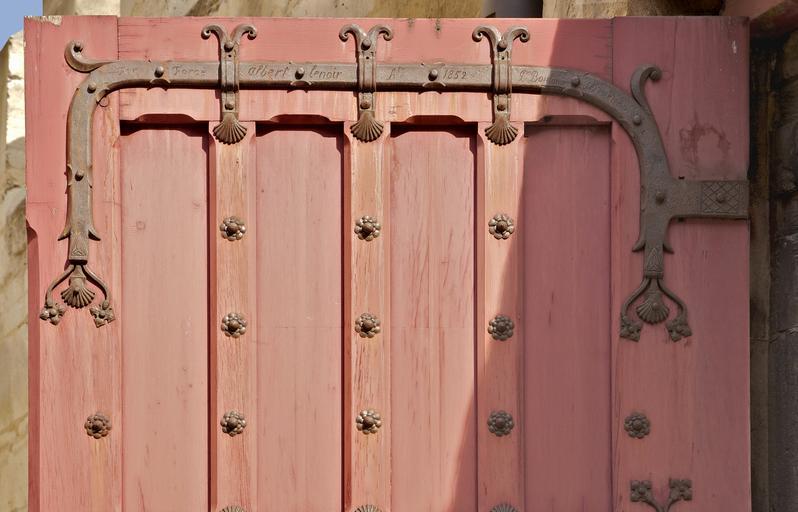 | Keywords: Penture porte musée Cluny signée.jpg 48 850269 2 343966 Pierre François Marie Boulanger 1813-1891 ferronnier d'art et d'Albert Alexandre Lenoir 1801-1891 peintre et architecte Daté 1852 en Decorative upper hinge of the right portal at the entry of hôtel de Cluny One can read the names of the architect Lenoir and of the wrought iron artist Pierre Boulanger Dated 1852 2012-06-17 own Jebulon cc-zero Uploaded with UploadWizard Pierre Boulanger ferronnier Wooden doors in Paris Red doors in Paris Details of doors in Paris Gothic doors in France Decorative hinges in Paris Hôtel de Cluny Albert Lenoir Ironworks in France 1852 works in France Quality images by Jebulon Quality images of Musée national du Moyen Âge QualityImage |