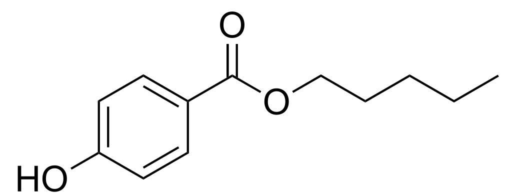 Keywords: Pentyl paraben.svg Chemical structure of pentyl paraben pentylparaben pentyl p-hydroxybenzoate Own 13 46 3 January 2011 UTC Edgar181 <span class signature-talk >talk</span> Parabens Pentyl esters