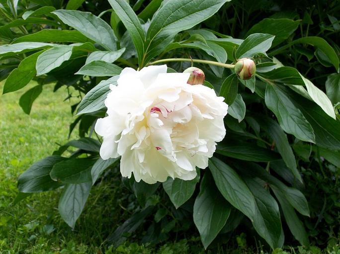 Keywords: Peony 4.jpg en Showing bloom and bush 2011-08-23 own Shed own-pd Uploaded_with_UploadWizard Unidentified Paeonia lactiflora cultivars White peonies