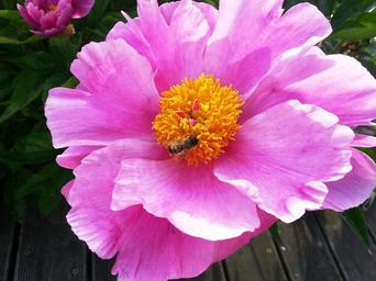 Keywords: peony flower paeonia pink yellow blossom bloom spring plant ornamental plant insect