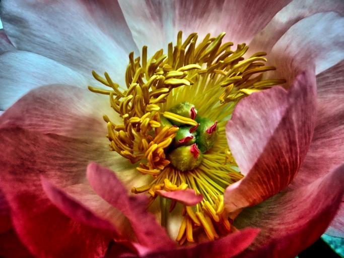 Keywords: peony pistil flower fragrant close pink macro hdr