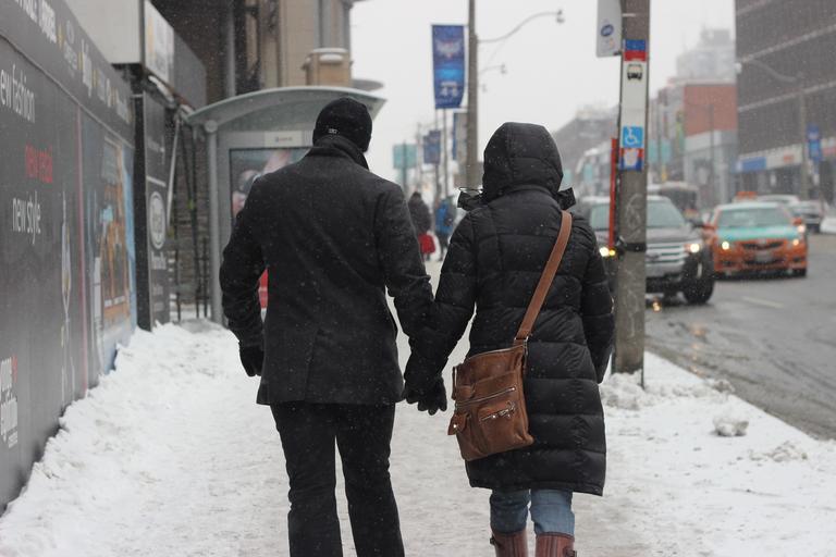 Keywords: people man woman pair love walking winter