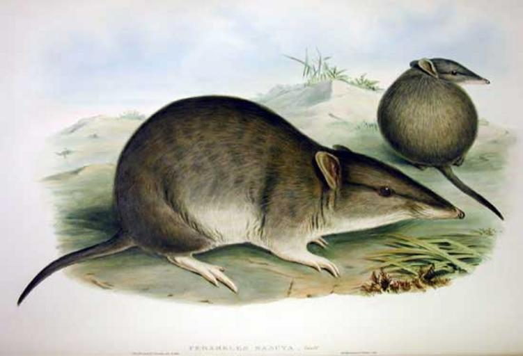 Keywords: Perameles nasuta - Gould.jpg Perameles nasuta John Gould F R S Mammals of Australia Vol I Plate 11 London 1863 <br> http //www museum vic gov au/bioinformatics/mammals/images/Per_nasu htm creator John Gould PD-old-100-1923 Perameles nasuta The Mammals of Australia John Gould |