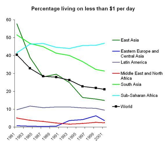 | Keywords: Percentage living on less than $1 per day 1981-2001.png en Chart showing the percentage of the population living on less than 1 per day 1981-2001 It excludes data for North America Based on US 1 08 in 1993 en Purchasing Power Parity PPP and then adjusted for country-specific inflation Data source How Have the World's Poorest Fared Since the Early 1980s by Shaohua Chen and Martin Ravallion http //econ worldbank org/external/default/main ImgPagePK 64202990 entityID 000112742_20040722172047 menuPK 64168175 pagePK 64210502 theSitePK 477894 piPK 64210520 Table 3 p 28 en wikipedia Chinneeb CommonsHelper 2006-12-29 Ultramarine wikipedia en en English Wikipedia Ultramarine svg original upload log page en wikipedia Percentage_living_on_less_than_ 241_per_day_1981-2001 png 2006-12-29 20 40 aomarks 733×655× 21216 bytes <nowiki>correct East Asida to East Asia and removed small artifact</nowiki> 2006-09-13 22 14 Ultramarine 733×655× 23060 bytes <nowiki>Data source How Have the World's Poorest Fared Since the Early 1980s by Shaohua Chen and Martin Ravallion http //econ worldbank org/external/default/main ImgPagePK 64202990 entityID 000112742_20040722172047 menuPK 64168175 pagePK 64210502 theSitePK 4</nowiki> Development Capitalism Poverty |