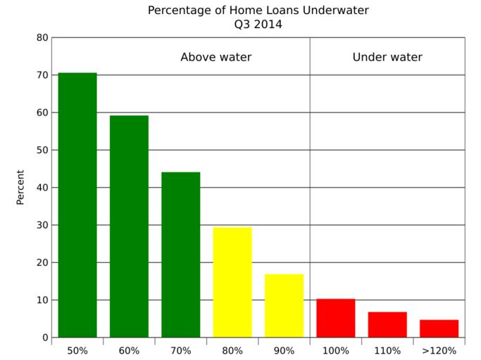 | Keywords: Percentage of US Home Loans Underwater Q3 2014.svg translate yes en Percentage of United States home loans underwater 3rd quarter 2014 http //www corelogic com/about-us/news/corelogic-reports-273 000-residential-properties-regained-equity-in-q3-2014 aspx The x axis is loan to value LTV 2016-08-11 own Delphi234 other versions cc-zero Mortgage crisis |