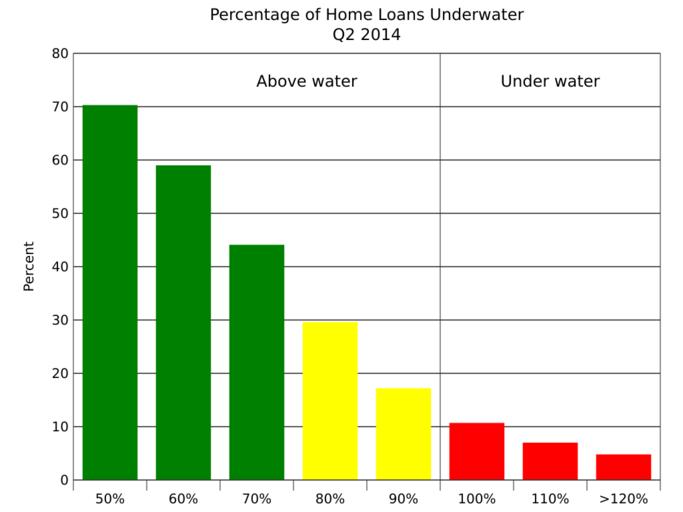Keywords: Percentage of US Home Loans Underwater Q2 2014.svg translate yes en Percentage of United States home loans underwater 2nd quarter 2014 http //www corelogic com/about-us/news/corelogic-reports-946 000-residential-properties-regained-1-trillion-dollars-in-total-equity-in-q2-2014 aspx The x axis is loan to value LTV 2016-08-11 own Delphi234 other versions cc-zero Mortgage crisis |