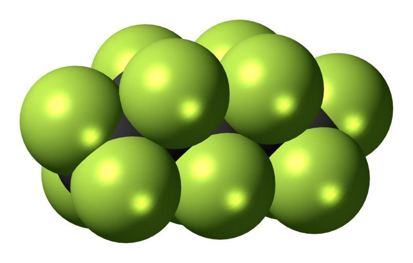 | Keywords: Perfluoropentane 3D spacefill.png Space-filling model of the perfluoropentane molecule also known as perflenapent a fuorocarbon used as a contrast medium Color code 505050 Carbon C black<br> C8FA64 Fluorine F yellow-green<br> 2011-12-17 own DS Visualizer Jynto talk Ball-and-stick version cc-zero Images by Jynto Perfluorocarbons Contrast agents |