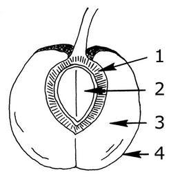 Keywords: Pericarp (PSF).png Line art drawing of a Pericarp Endocarp Seed Mesocarp Epicarp PSF_P-680000 png other versions Fruit diagrams Diagrams labelled with numbers only