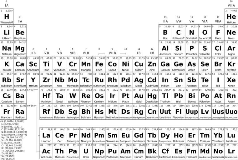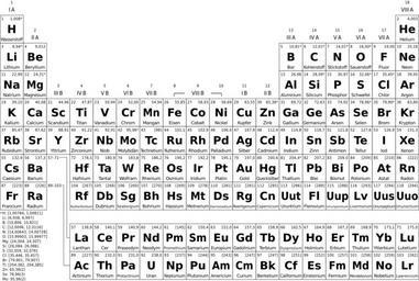 | Keywords: Periodic table simple de bw.svg en Simple periodic table with localized element names and standard atomic weights IUPAC 2009 Temporarily converted to paths till fixing Wikipedia ™s font problem with DejaVu Sans Condensed but also the previous version of this image works correctly outside of Wikipedia 2013-09-27 17 47 36 own László Németh Source code ; Created in LibreOffice 4 1 2 with this LibreLogo program ; Usage Put this code into an English language document in LibO Writer ; fix one program line for older LibreOffice versions see FIXME in the code ; and click on the Start icon of the View»Toolbars»Logo toolbar ; NEED INTERNET CONNECTION TO RUN THIS PROGRAM table data downloaded from Wikipedia lang input Language de el en fr hu it ru bw int input Color 0 COLORED 1 BLACK/WHITE ; Source pages http //www wikidata org/wiki/Q13584100 uselang hu sources ru D0 A1 D0 BF D0 B8 D1 81 D0 BE D0 BA_ D1 85 D0 B8 D0 BC D0 B8 D1 87 D0 B5 D1 81 D0 BA D0 B8 D1 85_ D1 8D D0 BB D0 B5 D0 BC D0 B5 D0 BD D1 82 D0 BE D0 B2 2 fr Liste_des_ C3 A9l C3 A9ments_chimiques 2 de Liste_der_chemischen_Elemente 1 el CE 9A CE B1 CF 84 CE AC CE BB CE BF CE B3 CE BF CF 82_ CF 87 CE B7 CE BC CE B9 CE BA CF 8E CE BD_ CF 83 CF 84 CE BF CE B9 CF 87 CE B5 CE AF CF 89 CE BD_ CE BA CE B1 CF 84 CE AC_ CE B1 CF 84 CE BF CE BC CE B9 CE BA CF 8C_ CE B1 CF 81 CE B9 CE B8 CE BC CF 8C 2 it Elementi_per_numero_atomico 2 hu K C3 A9miai_elemek_list C3 A1ja 3 if lang en langpage sourceslang0 langfield sourceslang1 ; column with element names on the Wikipedia page GLOBAL annotation posx posy size font font2 lang font DejaVu Sans font2 DejaVu Sans Condensed ; Wikimedia has got problem with it convert the result to path in Inkscape if needed posx 30 posy 40 size 42 ; load and process element data from Wikipedia embedded Python exec import urllib request exec data urllib request urlopen http //en wikipedia org/w/index php action raw title List_of_elements readlines exec table for j in i decode utf-8 replace style \\\ background-color 0x replace \\\ split for i in data if re match \ \d+ \ \ i decode utf-8 ; load and process other language data IF lang en exec data urllib request urlopen http // s wikipedia org/w/index php action raw title s readlines lang langpage IF lang de exec langtable i decode utf-8 split d strip split -1 for i in data if re match \ \d+ \ \ i decode utf-8 langfield-1 ; process and sort German data exec langtable i decode utf-8 split 0 split 0 split -1 strip \t split 0 split < 0 split 0 strip \t split -1 int i decode utf-8 split 2 strip \t for i in data if re match \ \t \d+ \t \ \ i decode utf-8 exec import operator exec langtable sort key operator itemgetter 1 exec langtable i0 for i in langtable langtable ; a few fixes table793 Mercury ; instead of Mercury element table117 24 31 ; Mg table257 55 85 ; Fe table637 157 3 ; Gd ; add missing positions TO the table FOR i IN RANGE 56 71 tablei5 i “ 56 “ 4 tablei6 8 5 FOR i IN RANGE 88 103 tablei5 i “ 88 “ 4 tablei6 9 5 ; helper functions TO width_of_last_object OUTPUT _ drawpage getByIndex _ drawpage getCount -1 getSize Width / 100 __MM_TO_PT__; IN PT END ; FIXME remove the space before the END TO delete_last_object _ drawpage remove _ drawpage getByIndex _ drawpage getCount -1 END TO element size d l18n bw PENUP POSITION posx + INT d5 size posy + FLOAT d6 size 1 2 HEADING 0 ; show group number IF INT d0 IN 1 2 4 5 6 7 8 9 21 22 23 24 25 26 27 28 29 30 IF lang en FORWARD size/2 + size/5 LABEL 0 1 d5 FORWARD size/2 + size/5 LABEL 0 4 5 d5 groupname 1 I ¯A 2 II ¯A 3 III ¯B 4 IV ¯B 5 V ¯B 6 VI ¯B 7 VII ¯B 8 • ” ” ” 9 VIII ¯B 10 ” ” ” •® 11 I ¯B 12 II ¯B 13 III ¯A 14 IV ¯A 15 V ¯A 16 VI ¯A 17 VII ¯A 18 VIII ¯A d5 IF lang not in hu groupname SUB groupname FONTSIZE 10 LABEL 0 1 groupname BACK size/2 + size/5 IF bw FILLCOLOR WHITE FILLCOLOR INT d1 PENDOWN RECTANGLE size size 1 2 PENUP IF M IN d2 OR m IN d2 OR 2 < COUNT d2 FONTFAMILY font2 FONTFAMILY font FONTWEIGHT BOLD FONTSIZE size/2 1 TEXT d2 FONTWEIGHT UPRIGHT FONTFAMILY font BACK size 1 2/2-size/20 fontsiz 5 6 FONTSIZE size/fontsiz IF l18n name l18nINT d0 -1 name d3 if lang de name name lower LABEL 0 1 name fontdescratio 492/2048 ; DejaVu Sans Condensed IF width_of_last_object > size 0 95 delete_last_object FONTFAMILY font2 LABEL 0 1 name width width_of_last_object IF width > size 0 95 delete_last_object fontsiz2 size/fontsiz size/width 0 95 FORWARD size/fontsiz fontdescratio - fontsiz2 fontdescratio FONTSIZE fontsiz2 LABEL 0 1 name BACK size/fontsiz fontdescratio - fontsiz2 fontdescratio FONTSIZE size/5 8 FONTFAMILY font2 FORWARD -size/2 + size/20 size 1 2/2-size/20 + size 0 6 “ size/20 HEADING 0 LABEL 1 -1 d0 RIGHT 90 FORWARD size “ size/10 LEFT 90 weight FINDALL \d+ \d+ \\d+\ d7 0 IF weight0 wsize COUNT FINDALL \d+ weight 0 w2size COUNT FINDALL \d+ weight 0 IF w2size > 4 “ wsize weight + STR 4 “ wsize + f FLOAT weight IF d2 IN H Li B C N O Mg Si S Cl Br Zn Se Mo Tl weight weight + IF lang not in en weight SUB weight LABEL -1 -1 weight END HOME CLEARSCREEN HIDETURTLE PENSIZE 0 5 PENUP bwtext FALSE TRUE _bw bw ; save black and white images with _bw label PICTURE periodic_table_simple_ s s svg lang bwtext FONTSIZE size/5 8 FONTFAMILY font2 ; legend POSITION posx + size/2 + size/5 8/2 posy + size 1 2 7 5 + size/20 HEADING 0 LABEL -1 -1 legend H 1 00784 1 00811\nLi 6 938 6 997\nB 10 806 10 821\nC 12 0096 12 0116\nN 14 00643 14 00728\nO 15 99903 15 99977\nMg 24 304 24 307\nSi 26 084 26 086\nS 32 059 32 076\nCl 35 446 35 457\nBr 79 901 79 907\nTl 204 382 204 385\nZn 65 38 2 \nSe 78 96 3 \nMo 95 96 2 if lang not in en legend SUB legend LABEL 1 -1 legend POSITION posx + size 3 5 posy + size 1 2 8 5 HEADING 0 PENDOWN LEFT 90 FORWARD 2 size/5/3 RIGHT 90 FORWARD size 1 2 3 “ size/20 “ size/5 8/2 LEFT 90 FORWARD 5 size/5/3 PENUP POSITION posx + 2 5 size + size/20 posy + size 5 5 1 2 + size/20 HEADING 0 LABEL 1 -1 57 “71 PENUP POSITION posx + size 3 5 posy + size 1 2 9