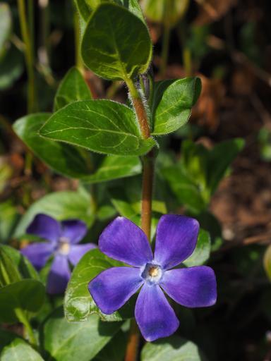 Keywords: periwinkle flower blossom bloom purple violet vinca dog gift greenhouse apocynaceae small periwinkle vinca minor ground cover toxic semi shrub chamaephyt creeping subshrub cone flower petals corolla carpels